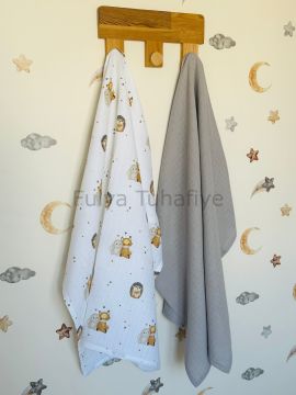 Çok Amaçlı 2'li Müslin Bebek Battaniye Seti %100 Pamuk Gri Kirpi